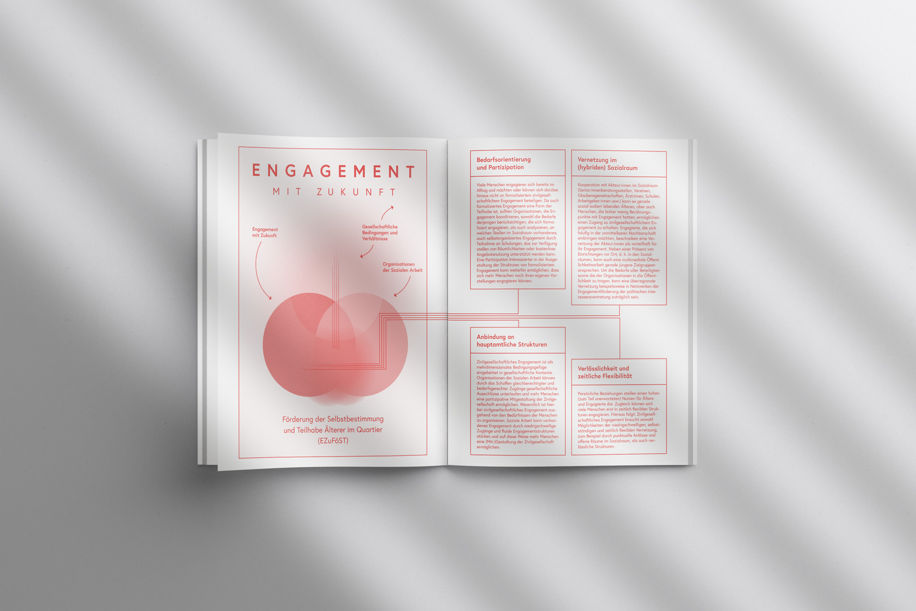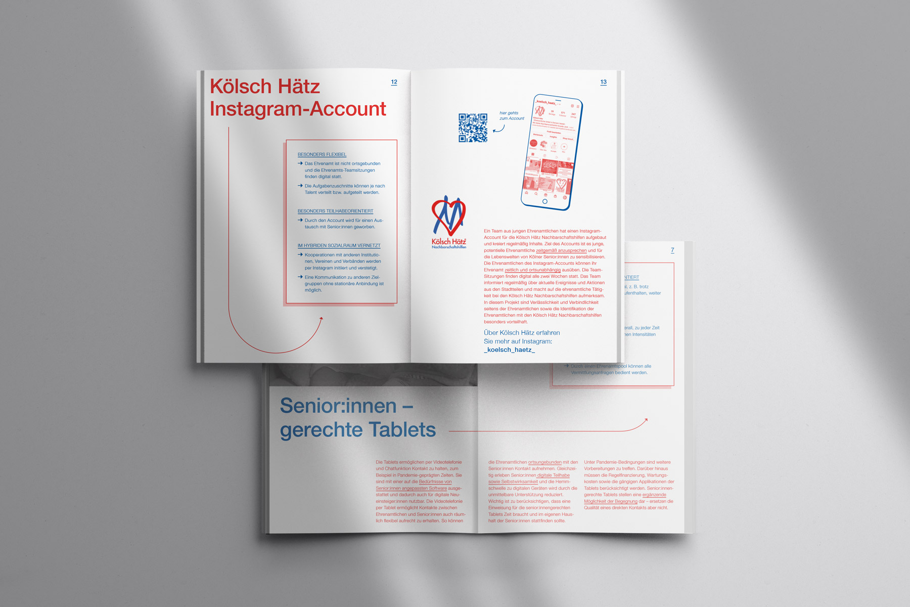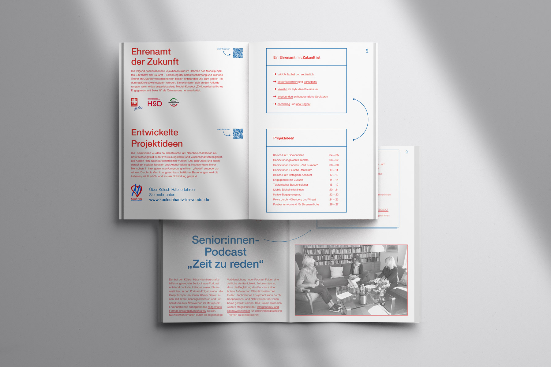 Editorial design for "Projektideen für ein Ehrenamt mit Zukunft Teilhabe von Senior:innen sichern und flexibles Engagement ermöglichen" (project ideas for a Volunteering with a future Ensuring, the participation of seniors and enable flexible engagement).