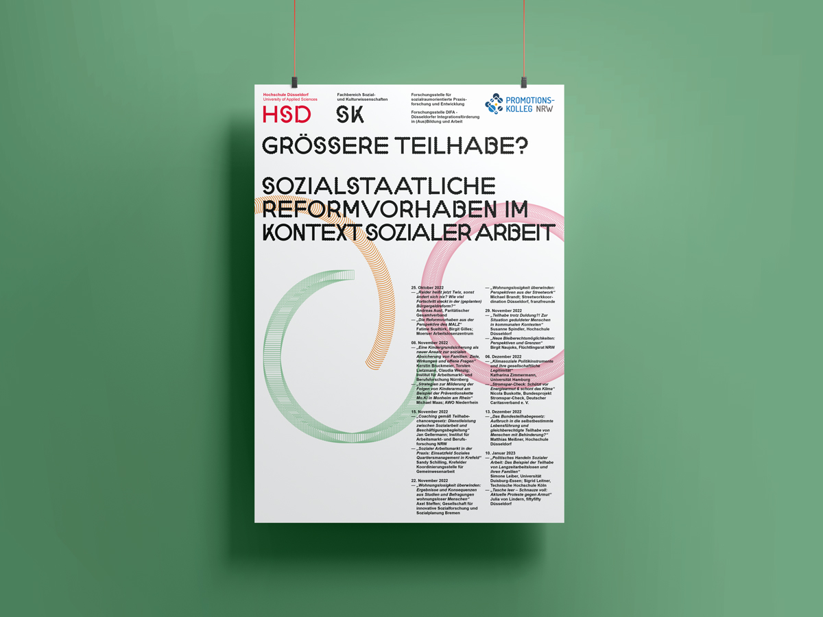 Development of three event poster for the "Forschungsstelle für sozialraumorientierte Praxis- und Entwickungsforschung (FSPE)" of the Düsseldorf University of Applied Sciences.
